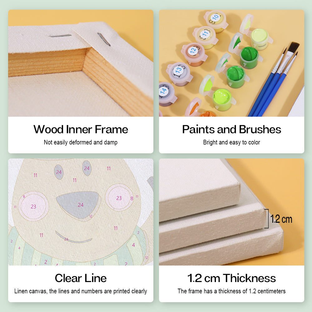 Odkryj wszystko, co niezbędne, starannie zapakowane w nasz zestaw do malowania po numerach. Z każdym komponentem oznaczonym i gotowym do użycia, możesz skupić się wyłącznie na swojej artystycznej podróży. Od żywych farb po precyzyjne pędzle, zadbaliśmy o to, aby nic nie stało między Tobą a Twoim płótnem. Odpowiedni zarówno dla początkujących, jak i doświadczonych artystów, ten zestaw oferuje czyste, nieprzerwane wrażenia z malowania.