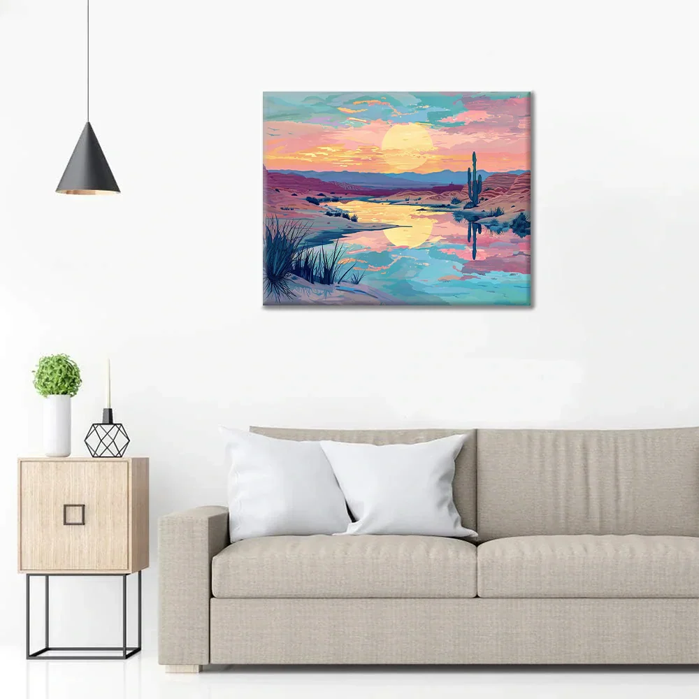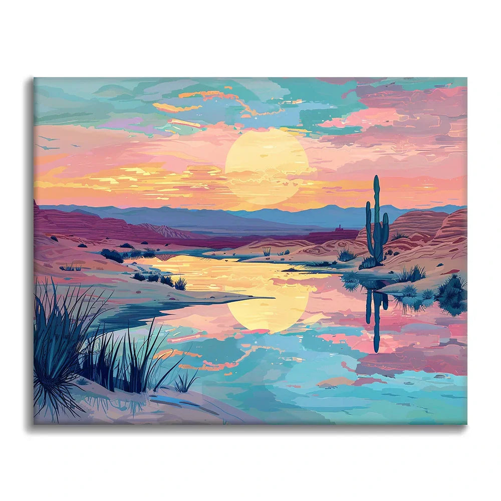 Zachód słońca na pustyni – malowanie po numerach
