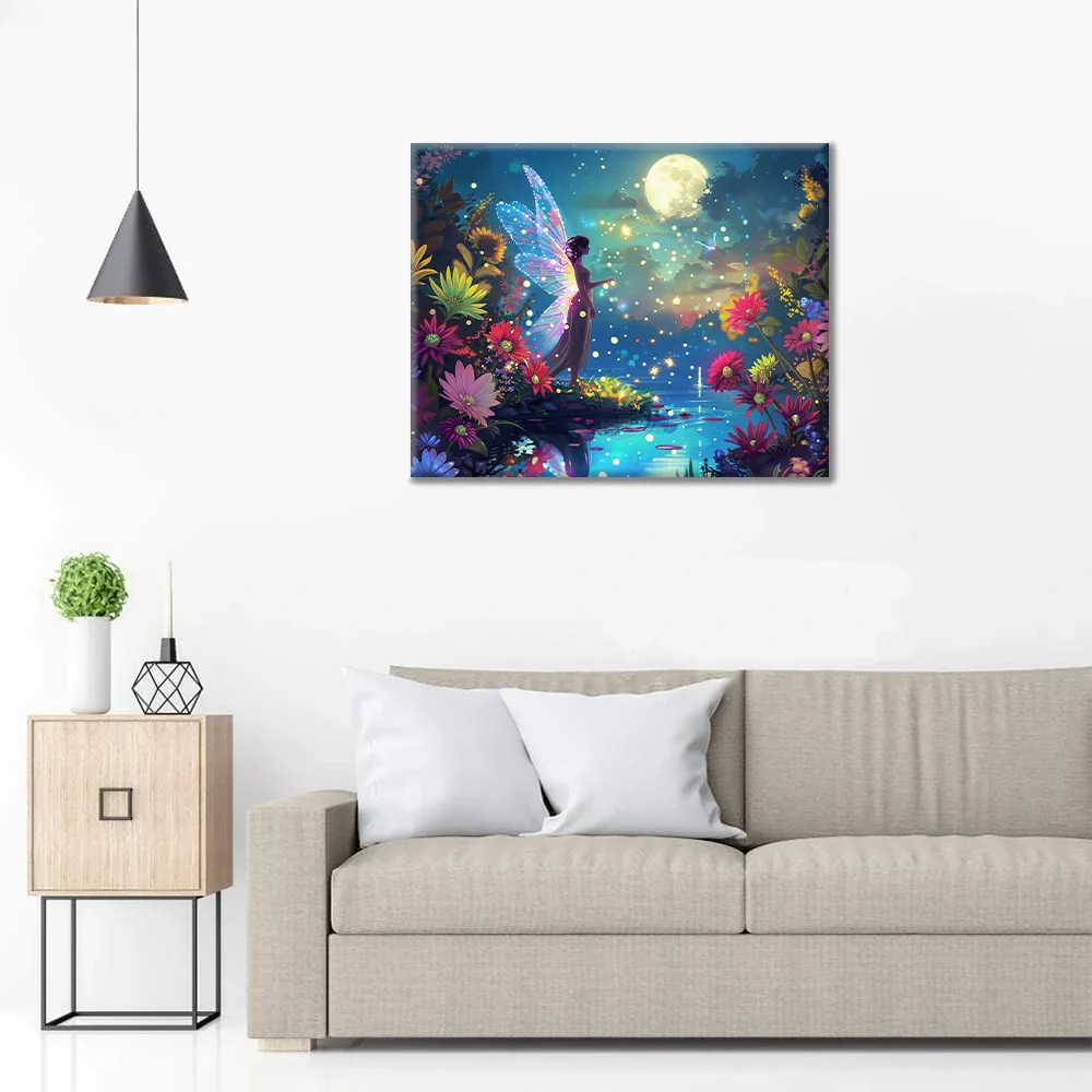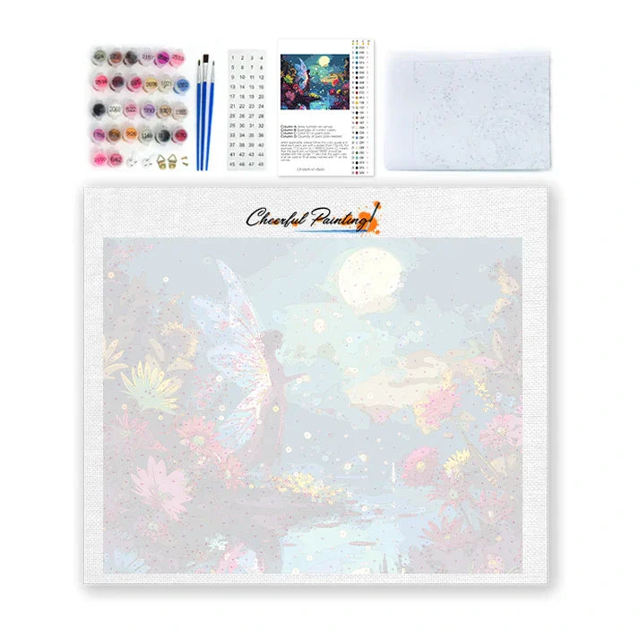 Wróżka nad stawem w blasku księżyca – malowanie po numerach
