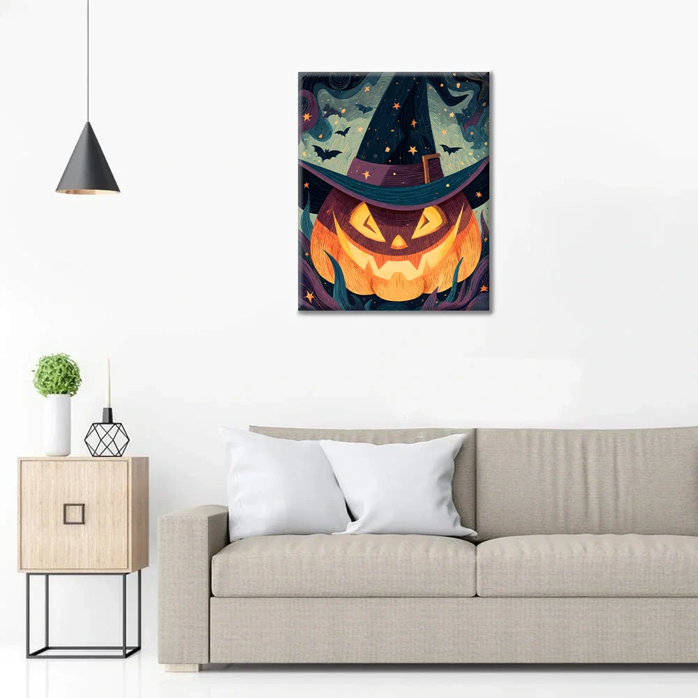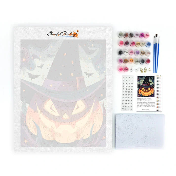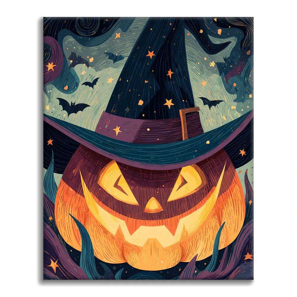 Lampion z dyni w kapeluszu czarodzieja – malowanie po numerach