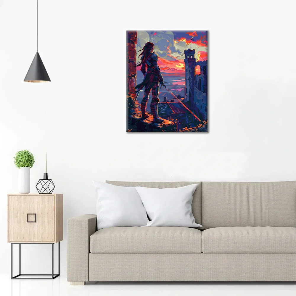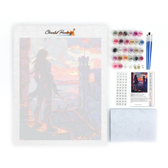 Wojownik o zachodzie słońca – malowanie po numerach